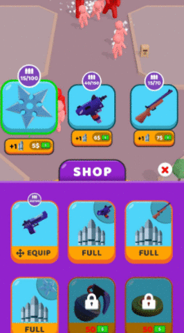 1.一开始你只有一把小枪但随着你射击技能的提高,玩家可以杀死更多的敌人。