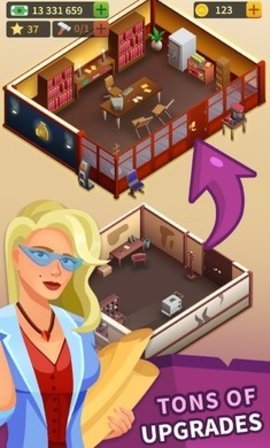 3、雇员工,买车辆,开心诊所,升级办公室,装修办公室,收获很多财富。