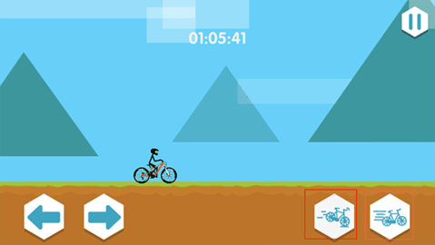 1、点击开端游戏进入游戏,右边的图标可以分别刹车和驾驶自行车,辅佐你加速和减速。