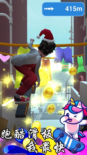 跑酷滑板我最快游戏是一款跑酷穿越游戏,当你进行游戏的时候,就能够得到一块滑板,这个角色的任务是驾驶滑板和完成各种程度穿插任务,这个角色的技艺十分丰厚和适用,每一种技艺都能够让你轻松处置一切关卡。