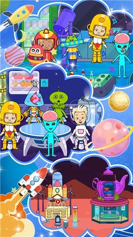 2、带来冒险探索玩法等待玩家游玩,一起进行冒险故事、太空城市建设。