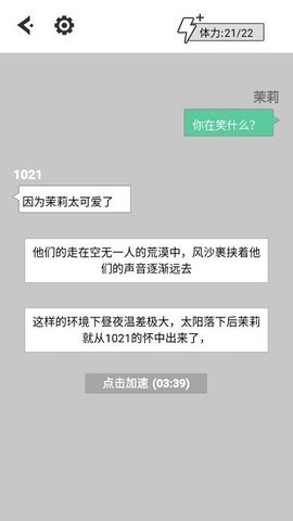 3、用第三人称的身份逐渐引导1021和Jasmine在末日下做出各种选择,从而导致不同的结局。