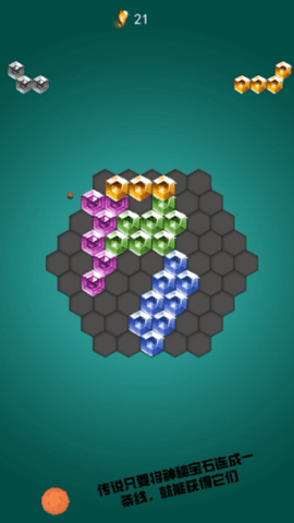 1、将三个六角形正方形的随机组合拖到棋盘上的空白位置上,一切图案都淘汰成功。