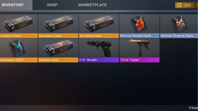 3、在仓库中,玩家能够查看本人搜集的皮肤,以及带有击杀计数器的皮肤版本,这与CSGO十分类似。