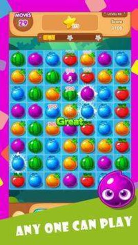 1、连上3个以上同色水果即可淘汰,单指控制。