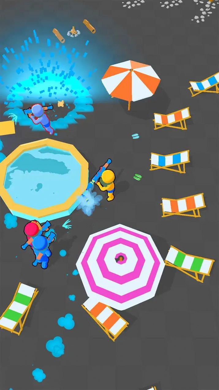 3.在夏天体验刺激的游戏。在泳池水枪派对中扮演枪手,互相射击,与大家一起玩水。