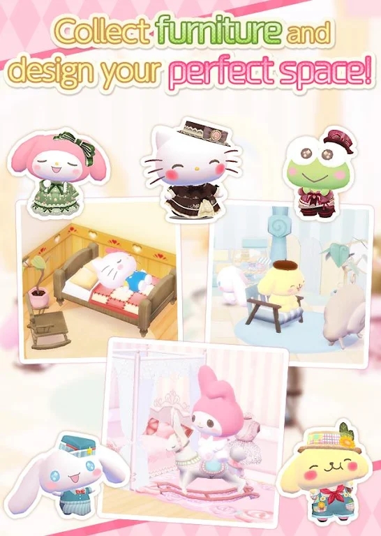 5、凯蒂猫与幸福生活游戏的绘画风格非常可爱。Q版超可爱角色齐聚一堂,带给你更多欢乐