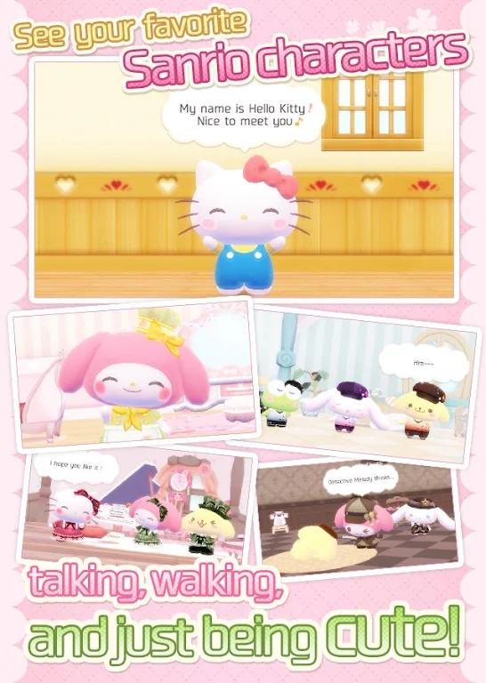 2、丰富的剧情设计,自由灵活的操作玩法,体验HelloKitty的快乐生活
