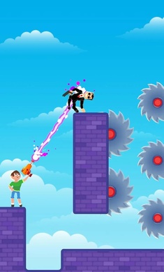 2、控制你的重力枪,将它们扔在尖刺、锯子、电围栏和其他工具上,以完成任务;