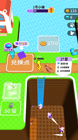 1、通过一层一层的挖掘,可以获得海洋球和解锁土地内部的功能,获得的海洋球可以在兑换点兑换金币;