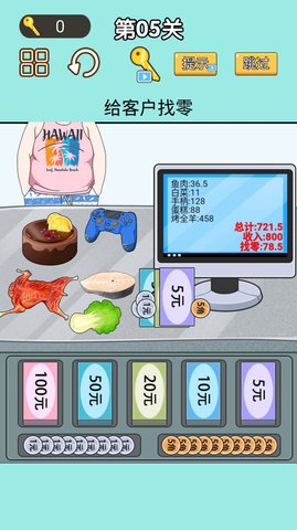 3、找零大师游戏相对简单。玩家运用扫描仪扫描顾客想买的东西。