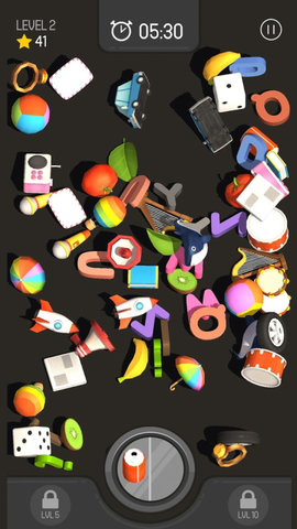 1、随着关卡的发展,道具会越来越多,你需要越来越快地找到相同的道具。
