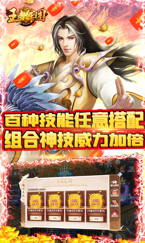 2.百种技能,任意搭配,组合神技,威力加倍,爽过开挂。每天可免费重置征战技能,66个技能任意三个组合一起,上千种搭配,每天体验不一样的技能组合,拒绝重复,新鲜不断,更具策略。