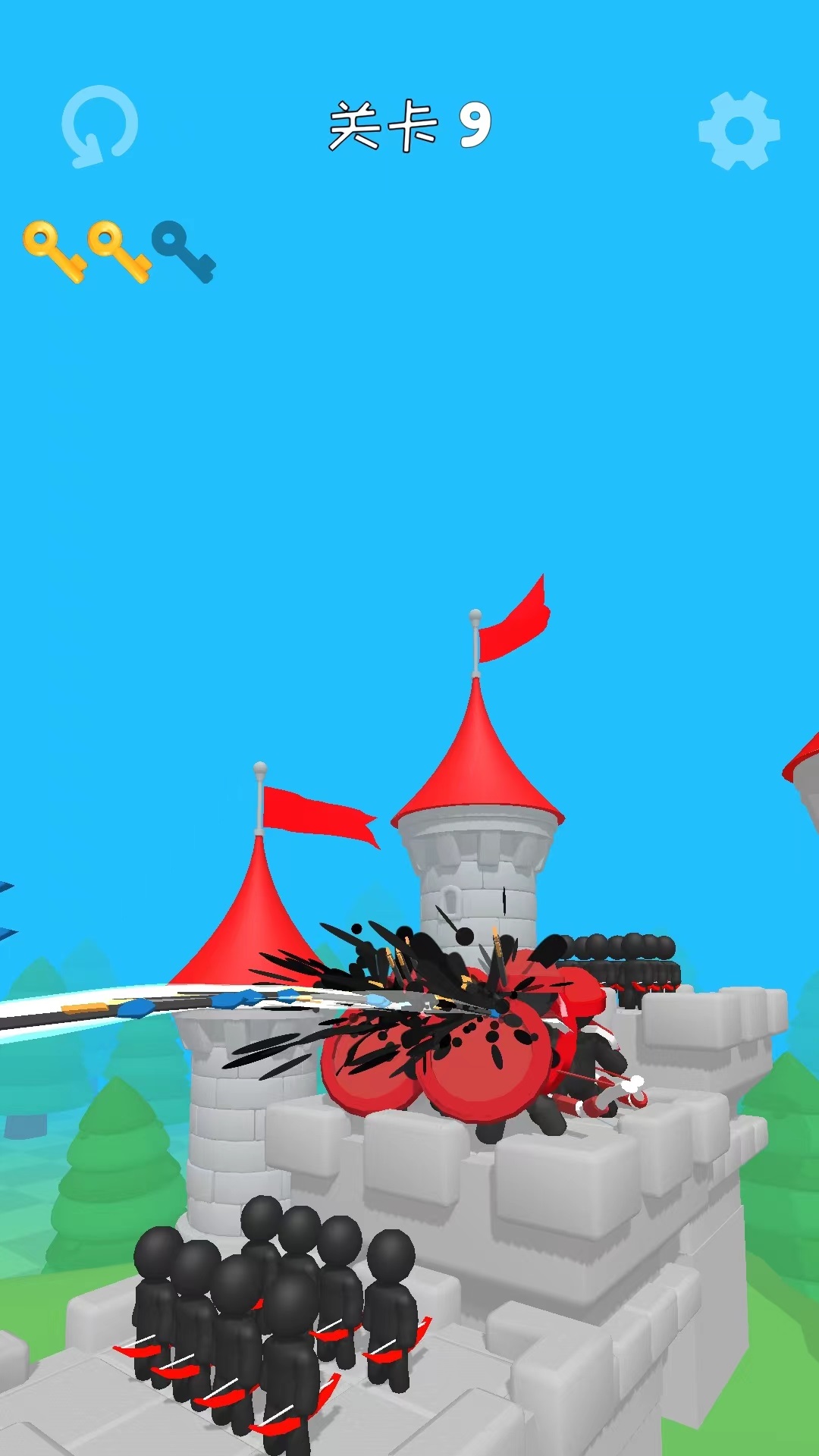 3.勇敢的撞锤游戏打嗝来调整射箭的角度,可以轻松击中敌人,来让自己快速通过。