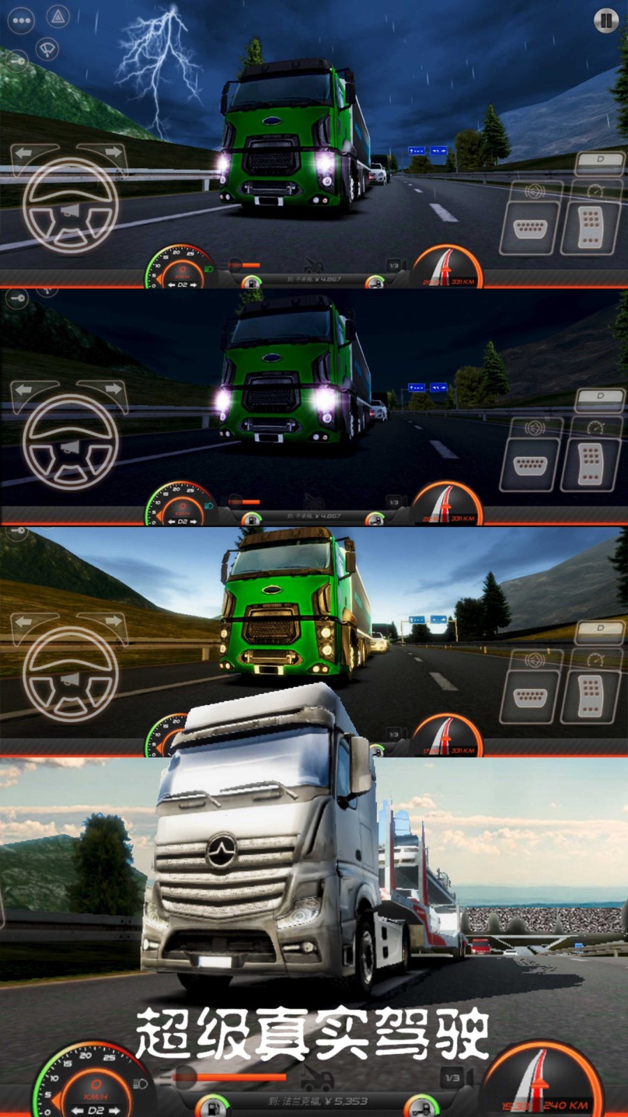 在超级真实驾驶游戏中,有一辆卡车供您驾驶,它将给你一个非常真实的画面,可以让玩家沉浸其中,游戏还将有许多按钮和方向盘,这将让你更好地控制车辆,可以完美地完成日常任务。在游戏中玩家还可以展示自己的驾驶能力,来完成更多的任务。