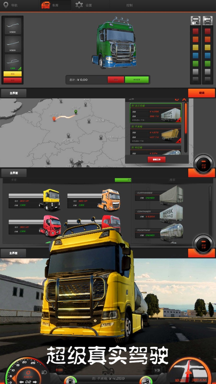 2.快速升级自己的卡车,可以提高卡车各方面的性能,还有许多运输任务等待玩家完成。