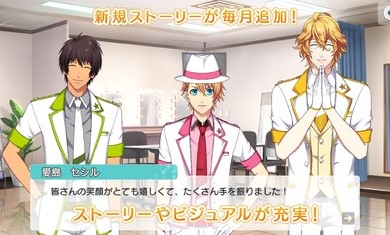 1、歌之王子殿下Shining Live进入音乐世界,打开浪漫故事,了解流行偶像并与他们互动;