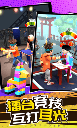2、刺激擂台王拥有卡通化的界面和令人兴奋的游戏玩法,与不同的对手战斗,寻找独特的操作技巧来战胜对手。