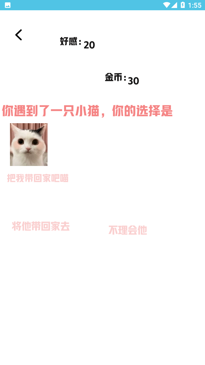 1、收养一只不幸的漂泊猫,经过各种互动增加与猫的好感度.