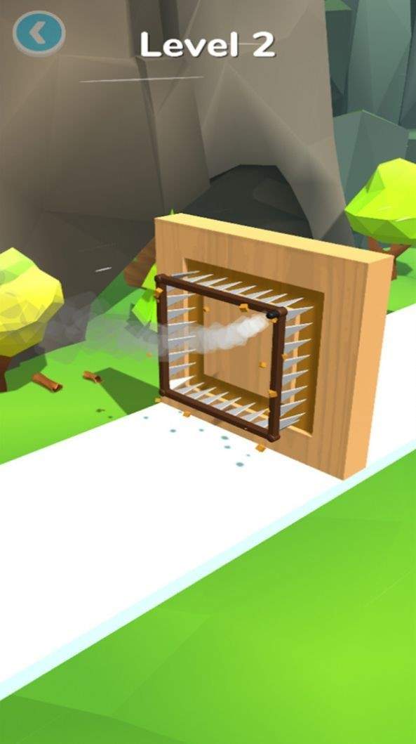 2、木材切割机3D游戏中的木头是不规则放置的,它们之间有很多障碍,所以你需求有一定的技巧.