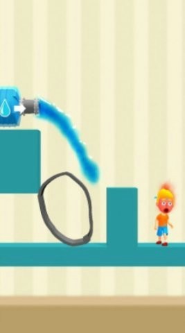 2.玩家画好线后,水会自动向下流动。只有画对了线水才会流向男孩,这也很简单。