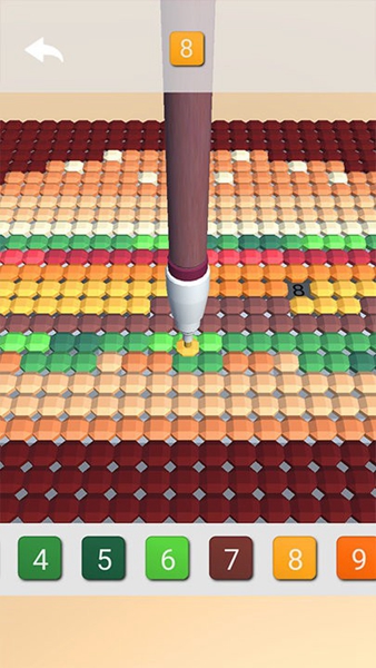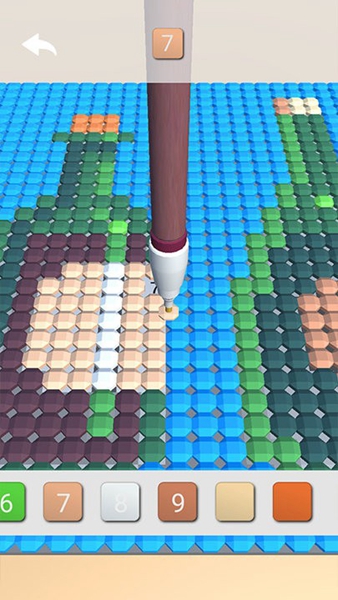 1、选择所需的颜色并将笔拖动到像素网格以自动嵌入颜色。这是一个快乐的挑战,也是一个精彩的挑战;