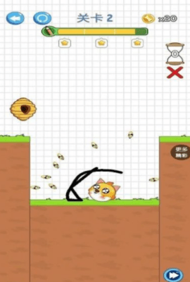 2、划清界限拯救玩法,我们的任务是将狗头从蜜蜂的攻击中拯救出来,有趣的挑战不要错过;
