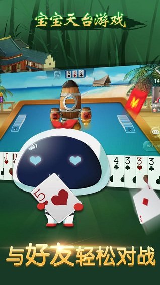 宝宝天台游戏安卓版是专为天台棋牌爱好者搭载的地方特色手机棋牌,包含天台三阿磨、双扣等等多种特色玩法,随时可以叫上好友组桌对战,享受天台棋牌的趣味,喜欢的朋友欢迎来下载试用。