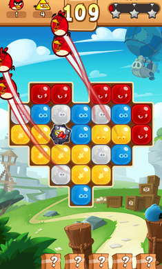 虽然主角还是那几只淘气的小鸟,但在玩法上开发商又一次进行了新的尝试。采用了消除类的玩法,不同的小鸟都被包含在不同颜色的气球当中,而玩家根据选颜色的不同消除了气球之后,小鸟们就会被释放出来。而为系列当中的反派担当,绿猪们依然会在游戏中登场。
