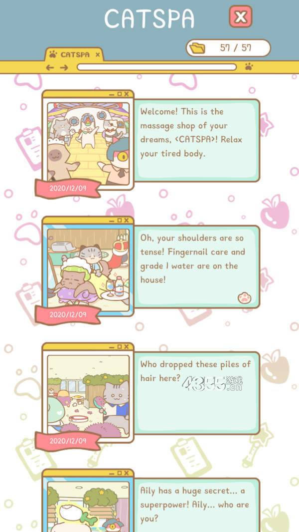 猫咪水疗中心内购破解版游戏是一款可以解锁到超多动物有着各种水疗玩法的模拟经营类手机游戏,精致的卡通画风,可爱的猫咪形象。可爱喵星人陪你去逛街,还能去按摩放松身心,可以不断升级,提升员工的等级,拥有更多的技能天赋,解决顾客的烦恼,获得顾客的满意度,让客人们更喜欢你的水疗中心。喜欢的快来下载吧!