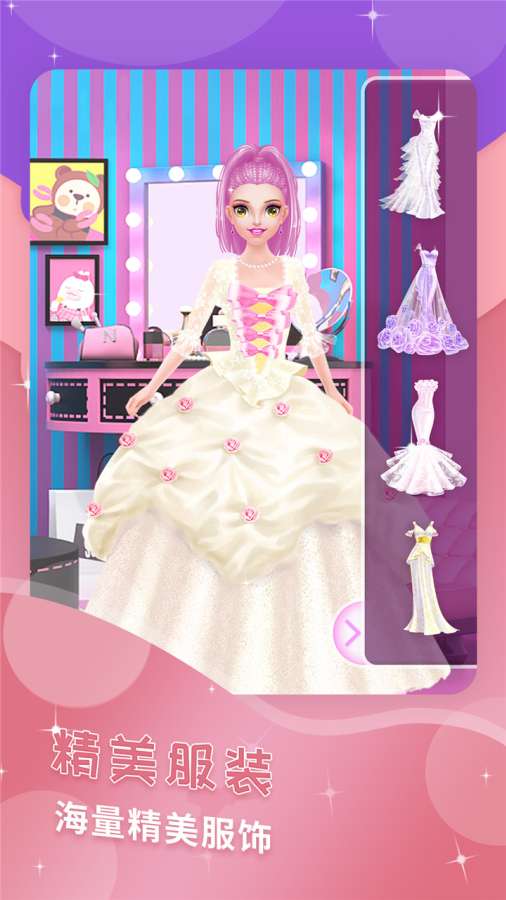1.为你所爱的女孩化妆,这可以使女孩变得如此美丽,粉色的房间看着很迷人。