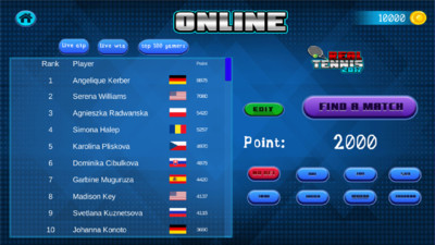 真实网球2017游戏中,玩家将会变成一个王球大师,在不断的挑战着世界各地的高手,和他们进行角逐。游戏中采用模拟的现实物理学,有逼真的3D效果,支持参加单人赛事挑战和本地通过wifi进行多人对战,优秀的制作加真实的动作成就了这款优秀的作品。通过方向按钮和动作按钮来操作,发球时要注意力量条的变化,打出精彩一击。游戏中的人物动作都相当真实,甩拍,扑接都是真实的动作。