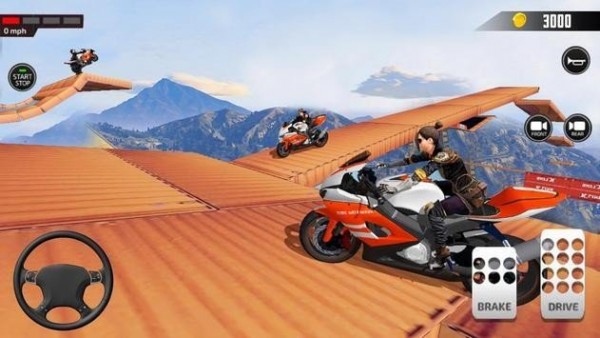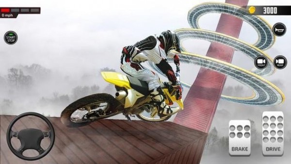 2、通过躲避和跳跃闪开的障碍,而是充满了特技效果的赛道,需要腾空和更精准的摩托车技巧;