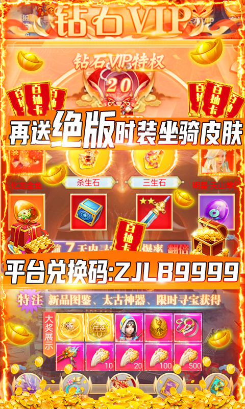 3、上线即送钻石VIP20,超级VIP豪华礼包助你修仙飞升,体验莞式SVIP般待遇!