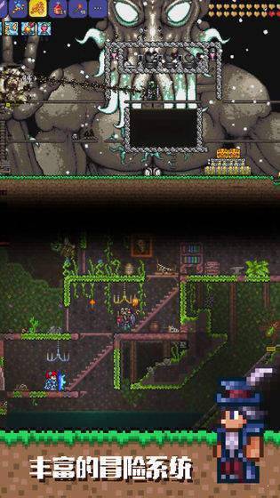 泰拉瑞亚1.4国际服(Terraria),游戏中会有很多国际资源内容可以使用非常简单,您需要探索许多领域,游戏采用非常精美的像素画风作为游戏背景,以独特滚屏作为游戏的主要玩法,欢迎来菜鸟游戏下载哦!