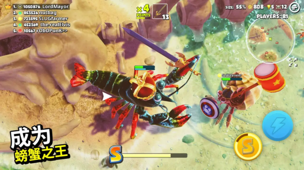 2.螃蟹之王游戏中有不同的螃蟹供您选择。这些螃蟹给你带来了不同的战斗感。