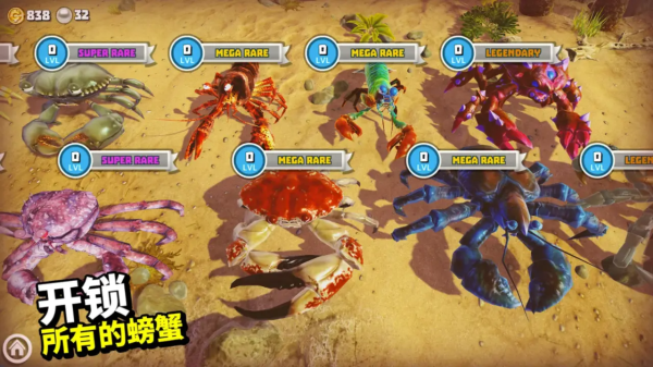 3.玩家可以在游戏中收集、升级和定制奇怪的螃蟹,让你更好地体验游戏中的各种乐趣。