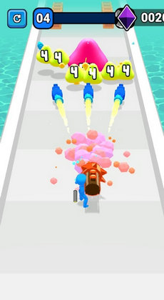 1.玩家需要在赛道上奔跑,用手中的武器逐一击败敌人。