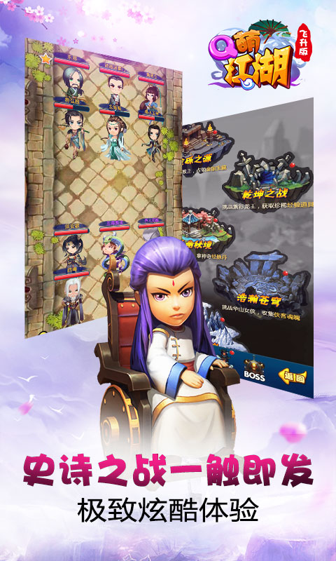 1、华山之巅,剑客争鸣;千年不懂棋,再现武林;在南方,独臂人与蒙古法王作战……传奇武侠经典故事,萌态再现手机方寸屏幕!