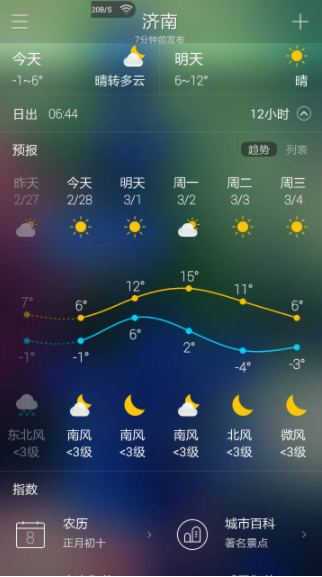 5 生活指数:紫外线、气压、风向、舒适度、洗车、感冒易发程度等生活指数,提前预知更好规划行程。