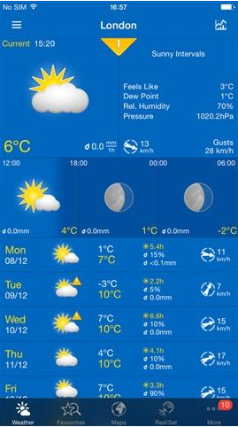 5 支持未来十日天气预报,可能比系统自带天气都丰富。