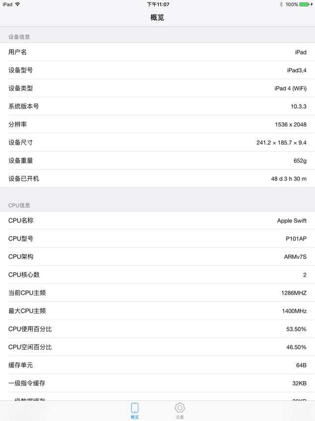 1.CPUDasher苹果版下载后拥有设备信息。