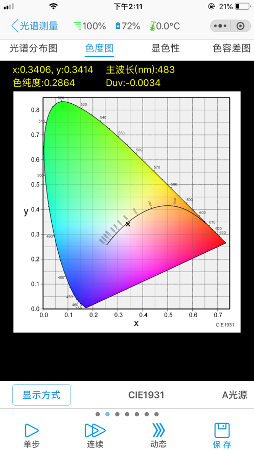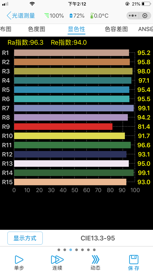 4 光谱分布,照度和辐照度,相关色温(CCT),显色指数(Ra,R1?R15),CIE 1931 / CIE 1976色度坐标,颜色公差(SDCM),峰值波长,主波长 ,颜色纯度等。