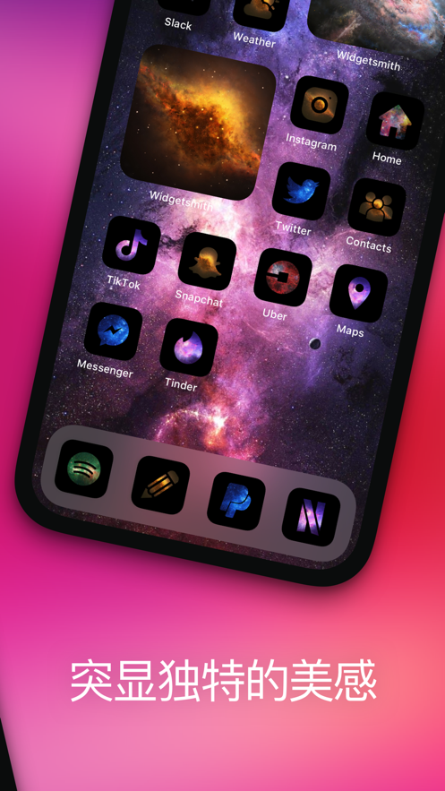 这款软件推荐给大家,欢迎下载使用,使用本款软件,可以用喜欢的图片自定手机桌面上应用图标,应用程序提供了一个广泛的集合,所有流行的图标样式。将您的iPhone美学提升到一个新的水平,并向你的朋友展示你的专属审美。所有的图标都是手工制作的,完全独一无二。