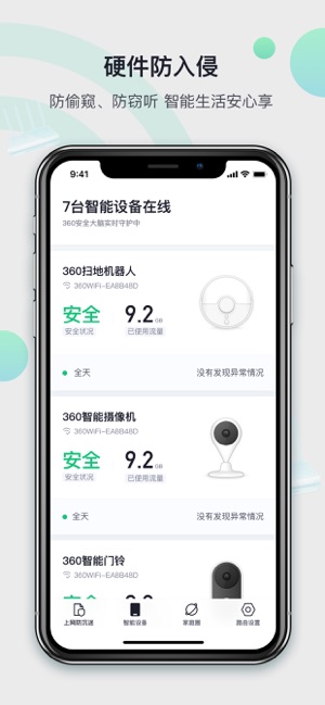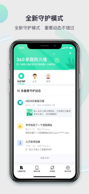 360家庭防火?墙?苹果版是一款为家守护的黑科技路由,致力于守护儿童、老人上网安全。具有孩子游戏防沉迷、老人上网防欺诈、智能硬件防入侵、微信查看上网报告等功能,为家人营造绿色健康的上网环境。