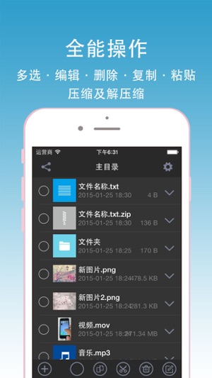 5.支持各种文件操作,如创建/删除/移动/重命名等。