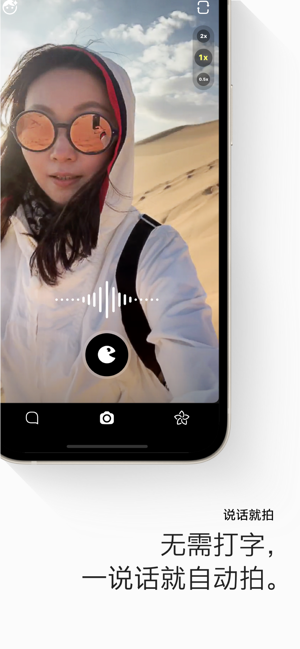 1.画音app下载后和朋友想见就见,说话就自动拍,不说话就不拍,不用辛苦打字,不用费心编辑。只要说话,就马上有一段生动的画音。