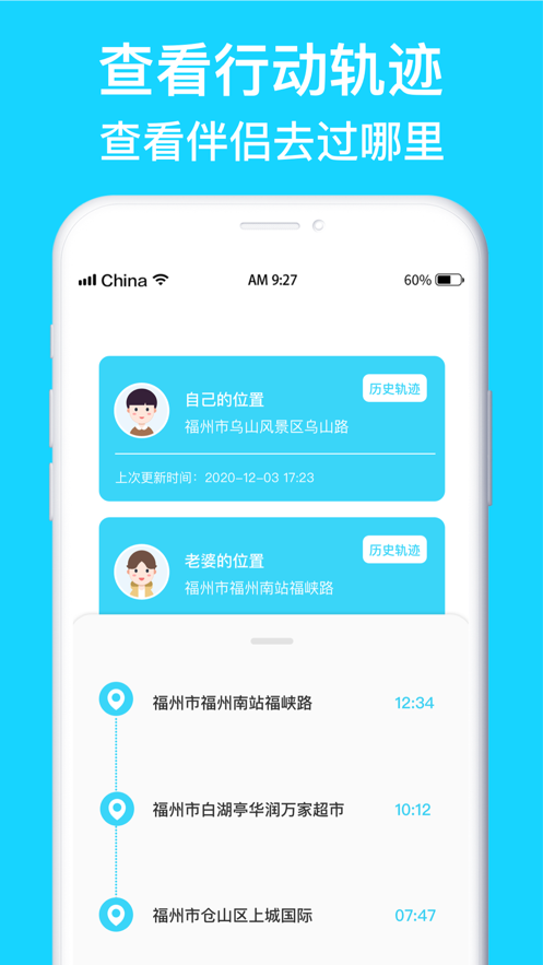 记录伴侣的行动轨迹,去过哪里都知道。给TA最好的关怀。