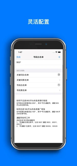 2、通过人工智能自动过滤器市场推广等垃圾短消息,可以用用户定义的关键词来屏蔽短消息。