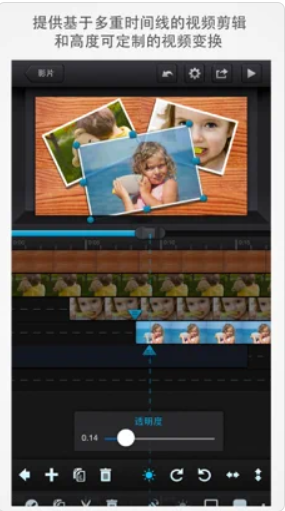 1 友好的用户界面:只需要简单的拖放操作,你就能轻松制作出属于自己的影片,直观的书架式影片管理,界面支持横屏和竖屏操作。